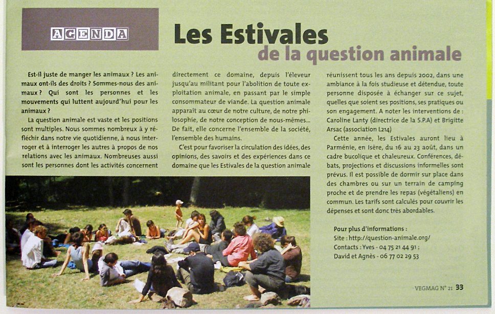 Dans le numéro 21 (juillet-août 2008) de Végétariens Magazine, les Estivales sont annoncées sur près d'une demi-page (p. 33) :
