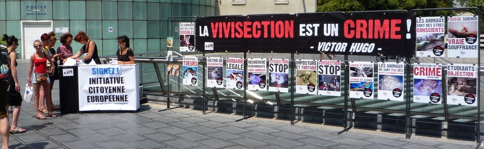Les objectifs et les revendications de l'Alarm sont l'abolition de l'esclavage animal, de toute forme de discrimination. On s'est fixé des outils : instaurer le dialogue et amorcer une prise de conscience sur l'abolition de l'esclavage animal. C'est aussi dans le but de garder à l'esprit que nous agissons dans l'espace public. Quand on fait des actions dans la rue, dans l'espace public, on s'adresse à la société tout entière et c'est pour ça que c'est important d'avoir des relais immédiats. Si on fait une action qui touche deux cents passants, c'est très bien. S'il y a des médias, on va en toucher cent mille ou deux cent mille. Parmi les fondateurs, il y a des personnes qui peuvent être opposées à des campagnes comme la campagne poules pondeuses de Monoprix mais se contenteront de ne pas y participer ; cela n'empêche pas les autres d'y participer. On fait attention que notre discours soit centré sur les animaux et que les autres restent secondaires. On a adhéré à une association qui s'appelle « mille bâbords » qui regroupe une dizaine d'associations à Marseille. C'est un local qui accueille les associations, une médiathèque, mais aussi un site un peu équivalent à Indymedia et c'est important pour nous de s'inscrire là-dedans. Du coup, Mille Bâbords nous met en avant. On a donc une ouverture vers d'autres formes de militantisme. On est une association toute jeune.