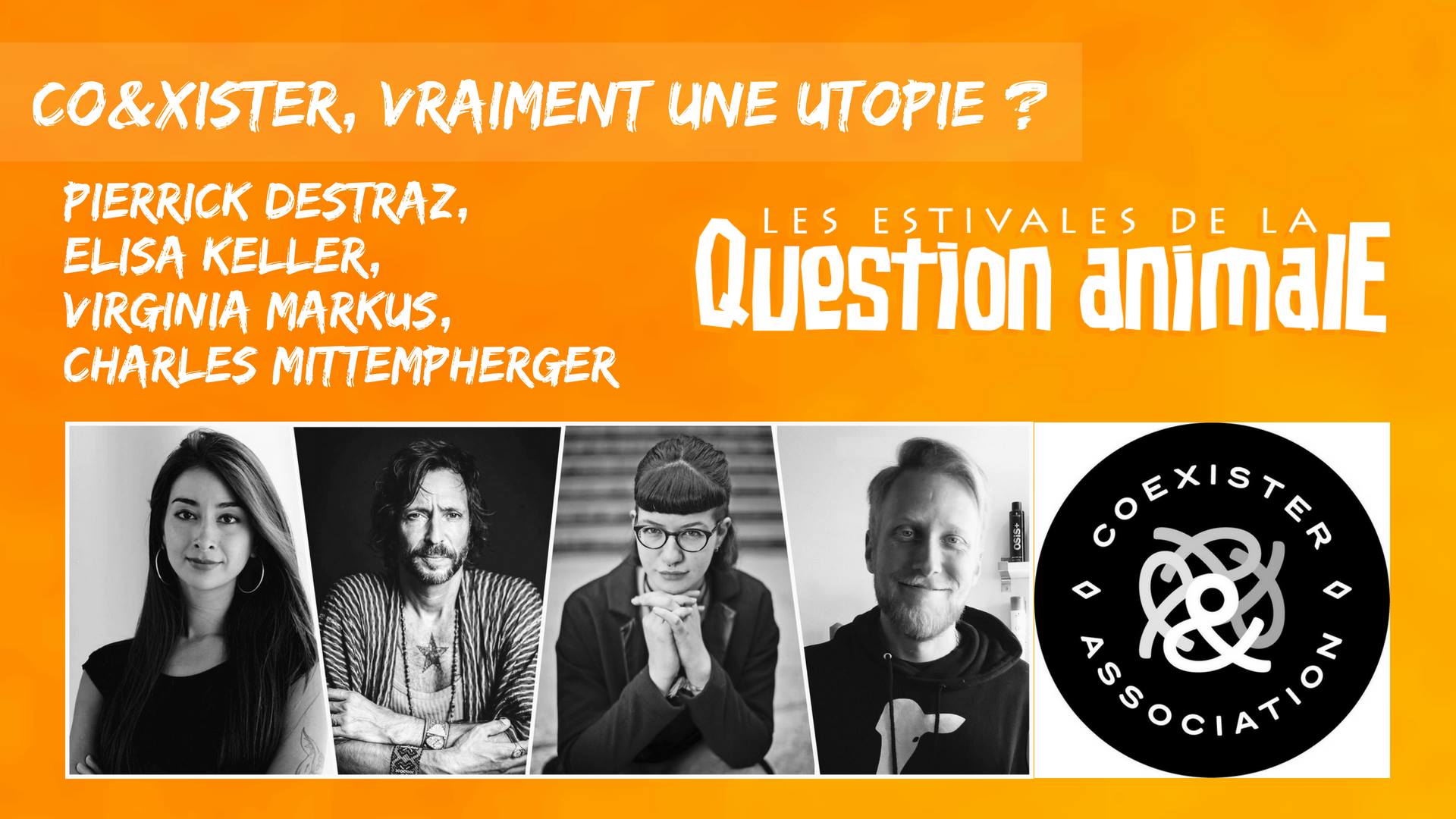 L'association Co&xister est née de la volonté commune de prouver par des solutions applicables concrètement, que la cohabitation respectueuse entre l'humain et l'animal est possible. Qu'elle est même nécessaire et salvatrice. Pour ce faire, il s'agira de permettre des rencontres individuelles entre humain-e-s et animaux, de soutenir la réorientation des professionnel-le-s dépendant de l'élevage, de fêter l'antispécisme par différents évènements et de continuer à sauver des animaux d'un destin de maltraitance. L'association a pour but de sortir de l'aspect contestataire du mouvement antispéciste et de se pencher sur des solutions du présent et de l'avenir.
