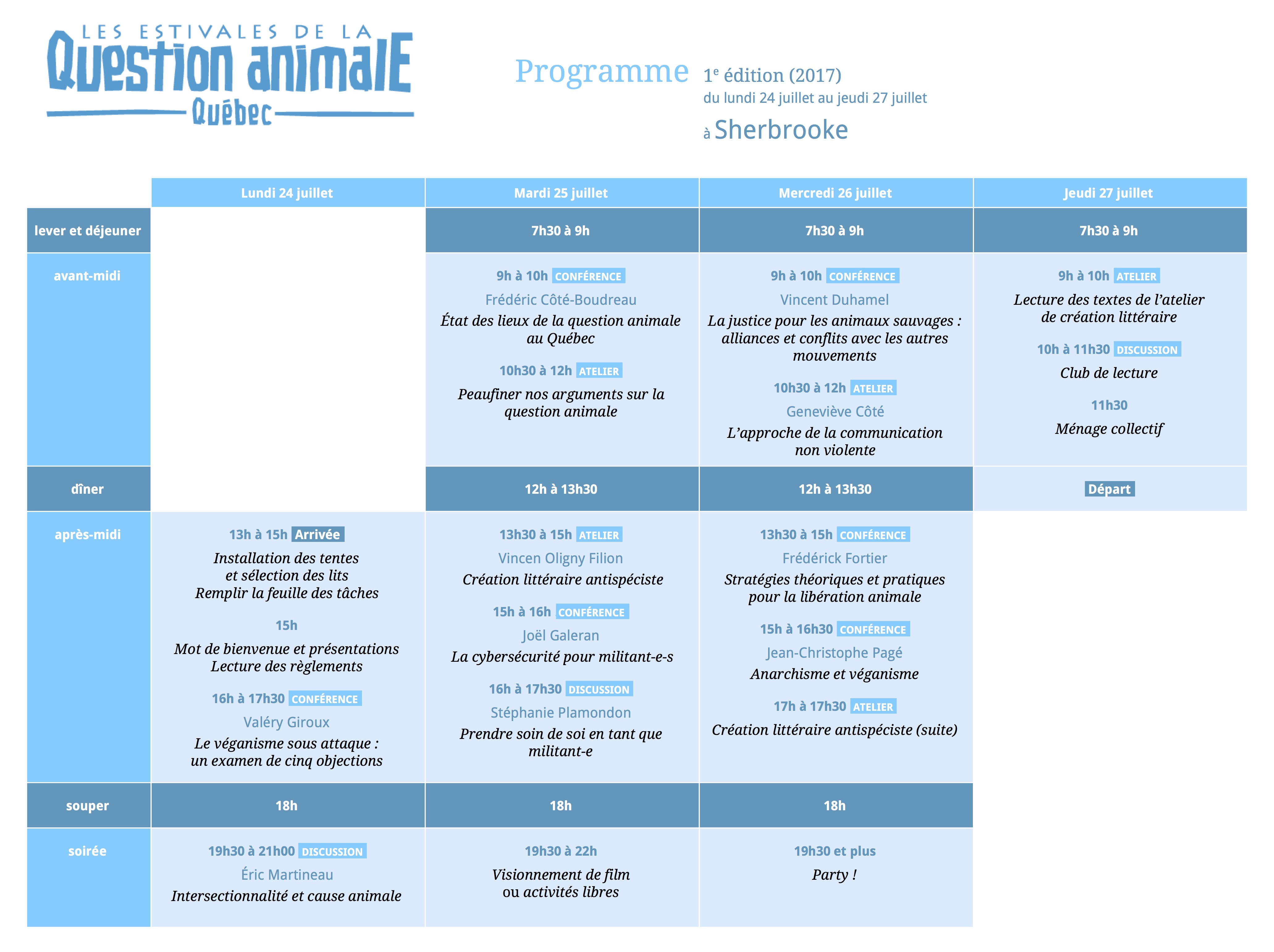 L'édition 2017 (la première!) des Estivales de la question animale au Québec a eu lieu du 24 au 27 juillet à Sherbrooke avec près d'une trentaine de participant-e-s.